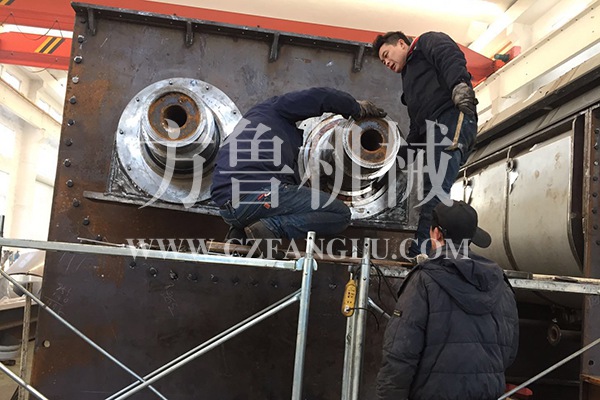 ● 通入冷卻介質,如水、冷卻鹽水等即可用來冷卻。如:使用于純堿行業的槳葉式涼堿機,取代老式的空氣冷卻涼堿機,節省了能源及尾氣處理設備,降低了操作費用 ,還可用于鈦白粉、鎳鐵合金粉及各種粉粒狀物料的冷卻。在單臺機里可以將物料從1000℃冷卻到小于40℃。